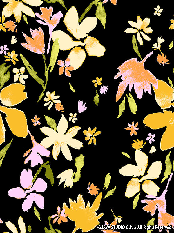 0828A- Black and Pastel Watercolor Floral