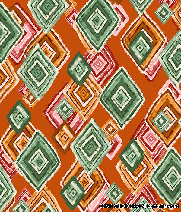 0662A- Hand Drawn Orange Ikat