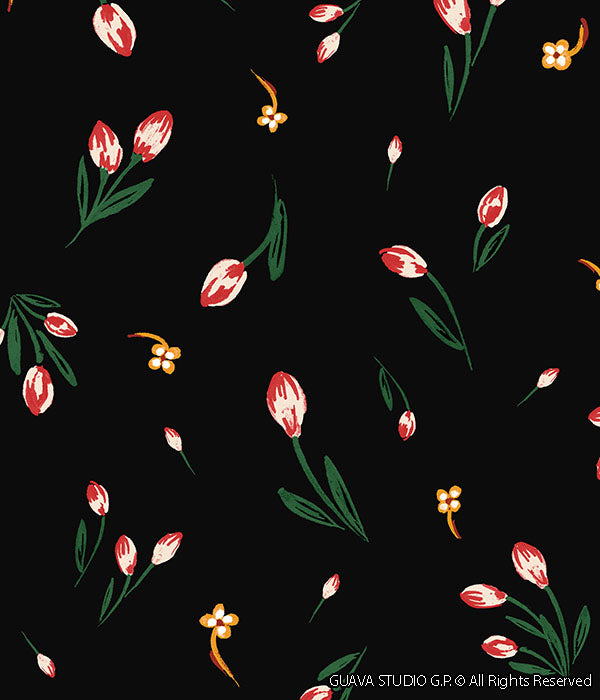 0664A- Dark Ditsy Hand Drawn Grunge Tulips