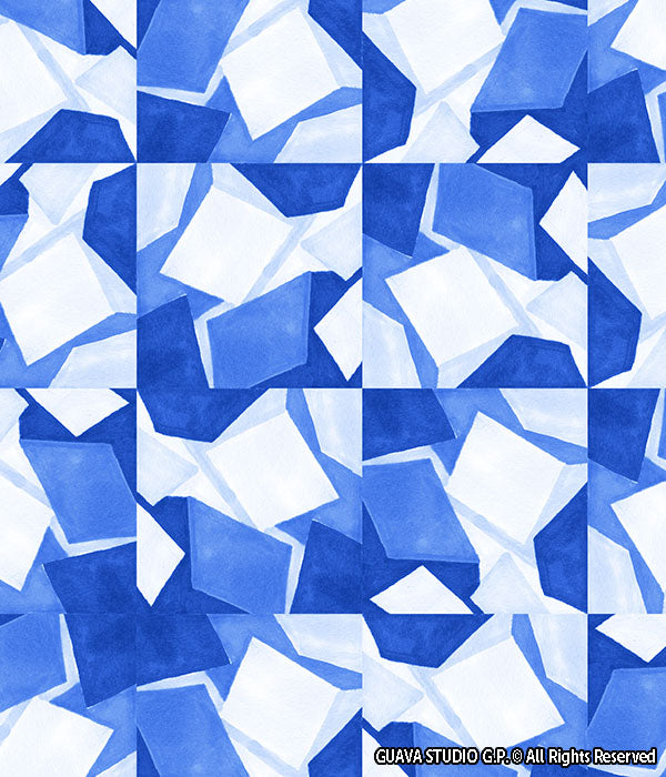 0723A- Soft Blue and White Painted Geo Tiles