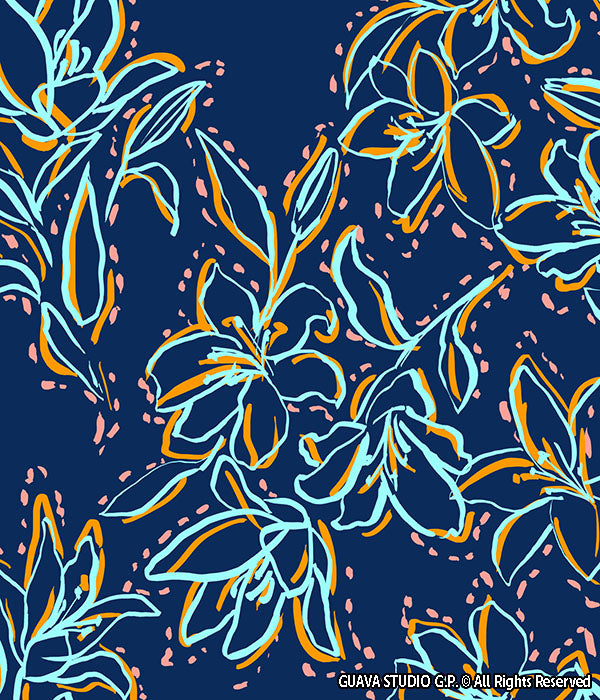 0733B- Outlined Navy and Teal Lillies
