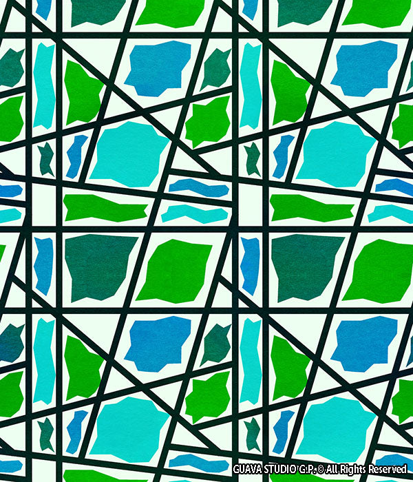 0779A- Irregular Teal and Green Geo Plaid