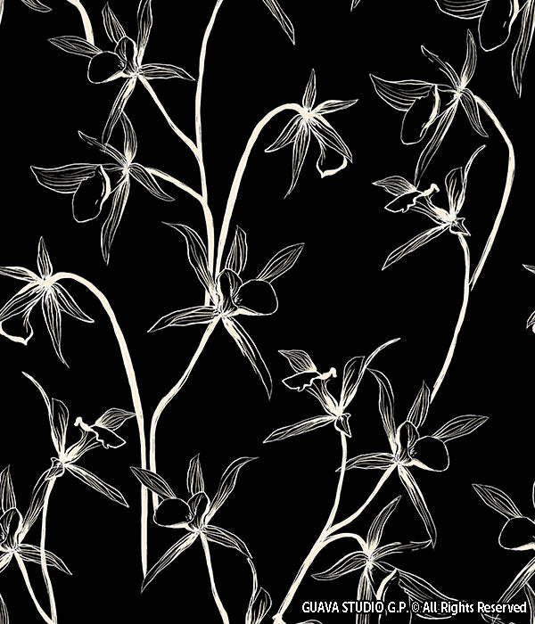0832A- Black and White Outlined Orchids