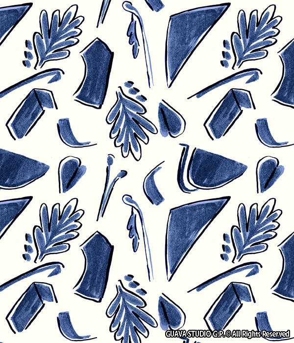 0820A- Indigo and White Abstract Foliage