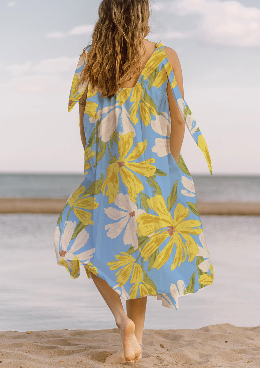 0852B- Blue, white and Yellow Watercolor Floral