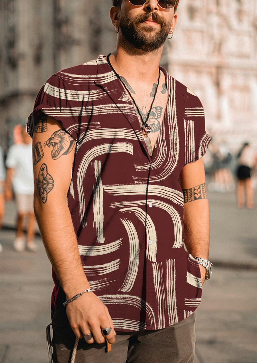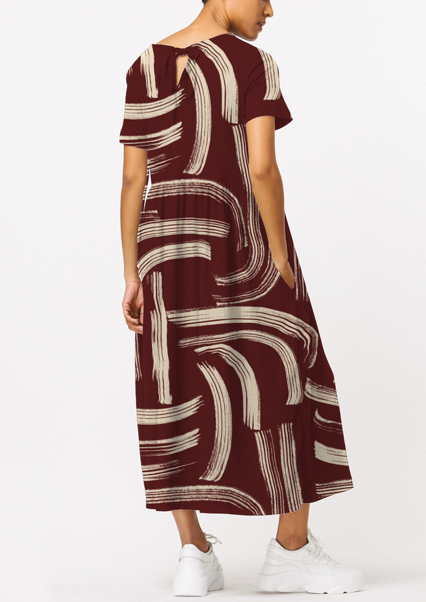 0868F- Burgundy and Off White Abstract Lines