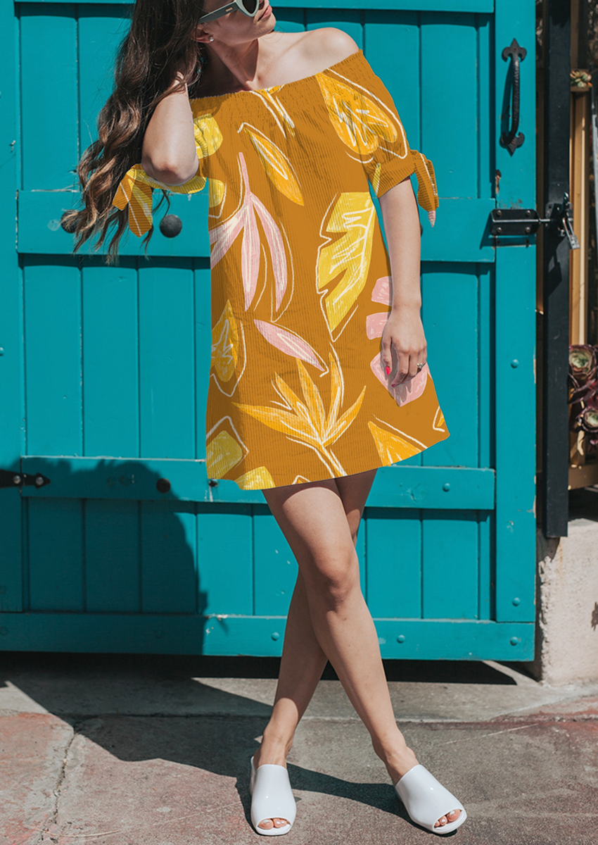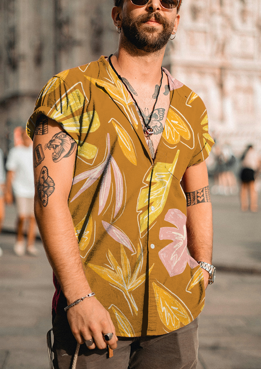 0876C- Gold, Yellow and Pink Tropical Leaves