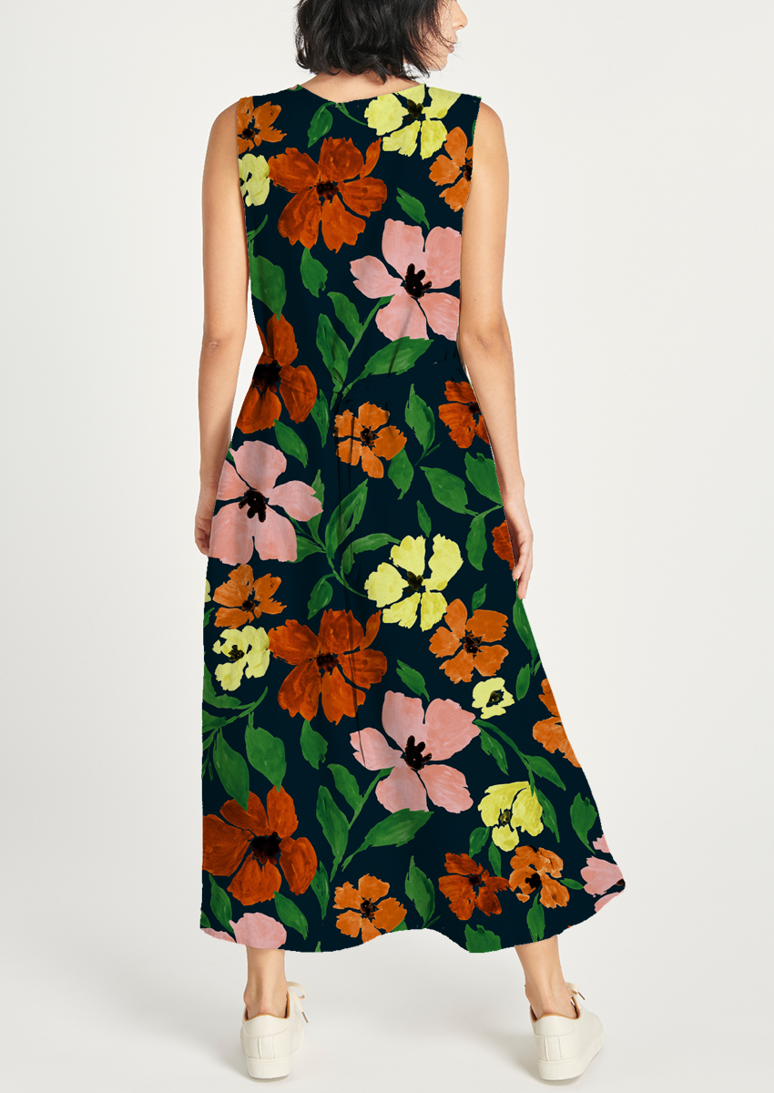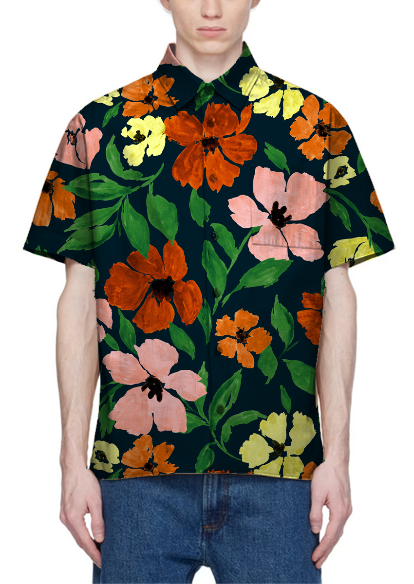0887C- Multicolored popies on navy ground