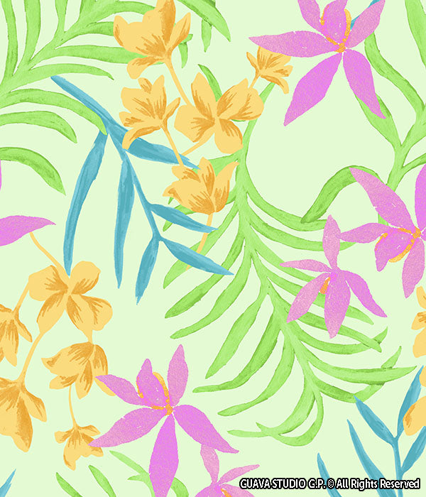 0762E- Mint Green and Neon Tropical Foliage