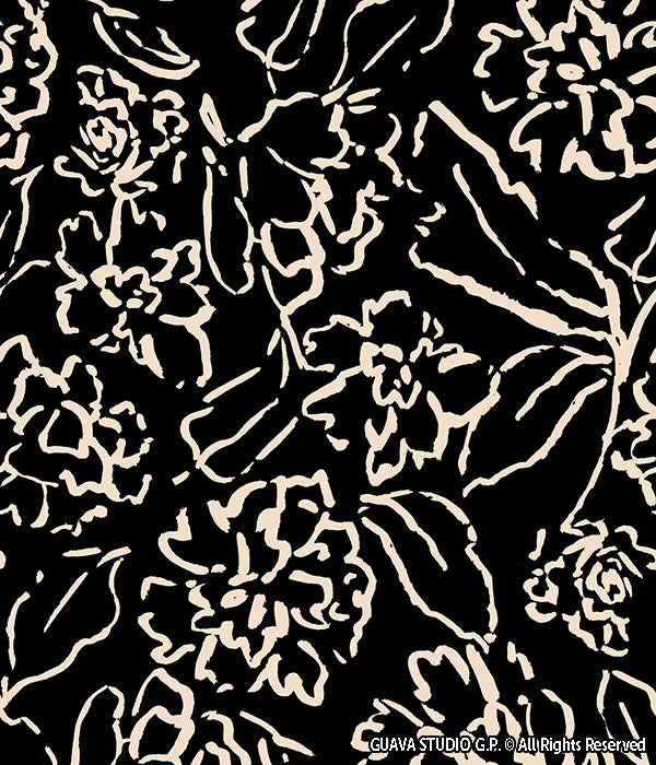 0766B- Black and Off White Bold Floral