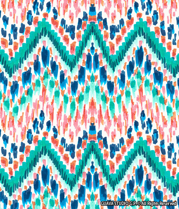 0727D- Teal and Coral Zigzag Ikat Stripes
