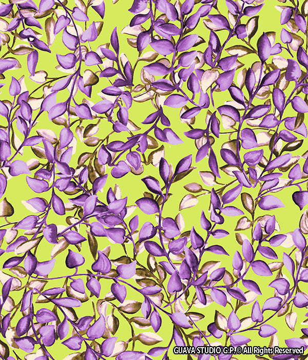 0460A- Lime Green and Purple Watercolor Trailing Leaves