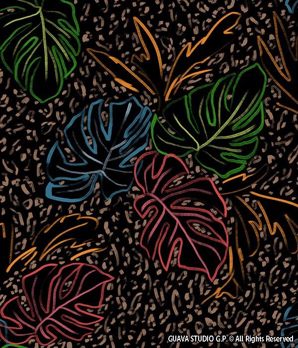 0741E- Dark Tropical Foliage & Mini Cheetah